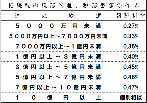 相続税の税務代理及び税務書類の作成(物納申請及び延納申請は除く)に係る報酬は次のとおりとさせていただきます。